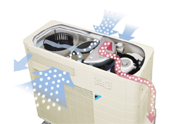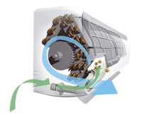 Con la nueva generación de unidades de la serie URURU-SARARA podrá controlar tanto la temperatura como la ventilación y la humedad. Pueden funcionar tanto en modo refrigeración como calefacción, de manera extremadamente silenciosa en cualquiera de los casos. Distribuyen el aire en 3 dimensiones y además lo limpian y desinfectan gracias a su filtro purificador de apatito de titanio con tecnología Flash streamer.