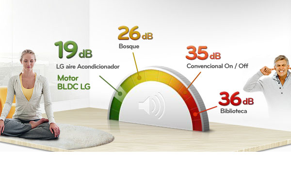 Gracias al diseño innovador del Aire Acondicionado LG y a la tecnología Skew Fan, el nivel sonoro es mínimo.